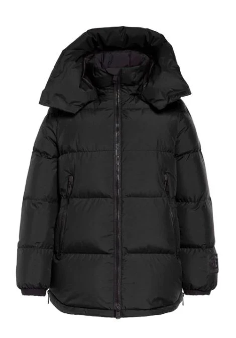 Down jacket with big hood.