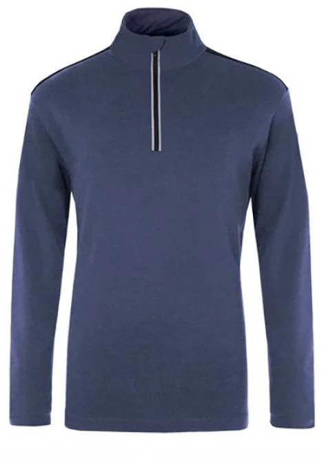 The men’s Calvin 1/2 zip top blends the comfort of cotton with sporty details like top-stitched contrast shoulder and reflective zip. Cozy and dense interlock knit (somewhere between your favorite T-shirt and your favorite sweatshirt) is perfect for winter layering. Features double-layer stand-up collar and chin guard. Meister label.