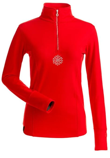 Heavyweight fleece backed womens ski and snowboard 1/4 zip t-neck with embroidered and crystal snowflake detail and natural wicking properties.