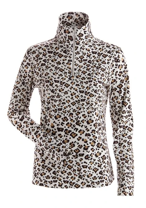 ¼ zip T-neck in an all over leopard print.