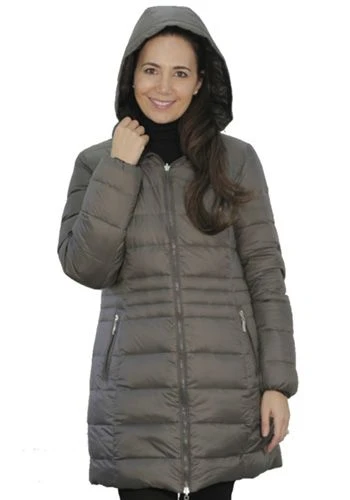 This stunning reversible feather down padded hooded coat has 90 down and 10% feather padding.